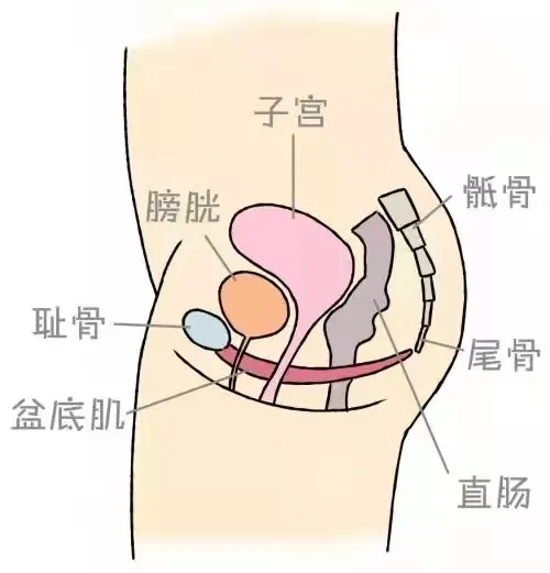 如上图所示,子宫从解剖位置来看,刚好横睡在膀胱上面,若是子宫肥厚增大或是腹内压力增加,势必导致膀胱内的压力变化。而承托盆腔脏器的重要结构,正是著名顶顶的“盆底肌”。如下图所示: